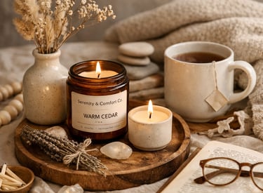 Serenity & Comfort Co. is your go-to for cozy candles and home fragrance that turn ordinary moments into little rituals. Thoughtfully made for relaxation, our scents are warm, soothing, and perfect for gifting, hosting, or unwinding at the end of the day.